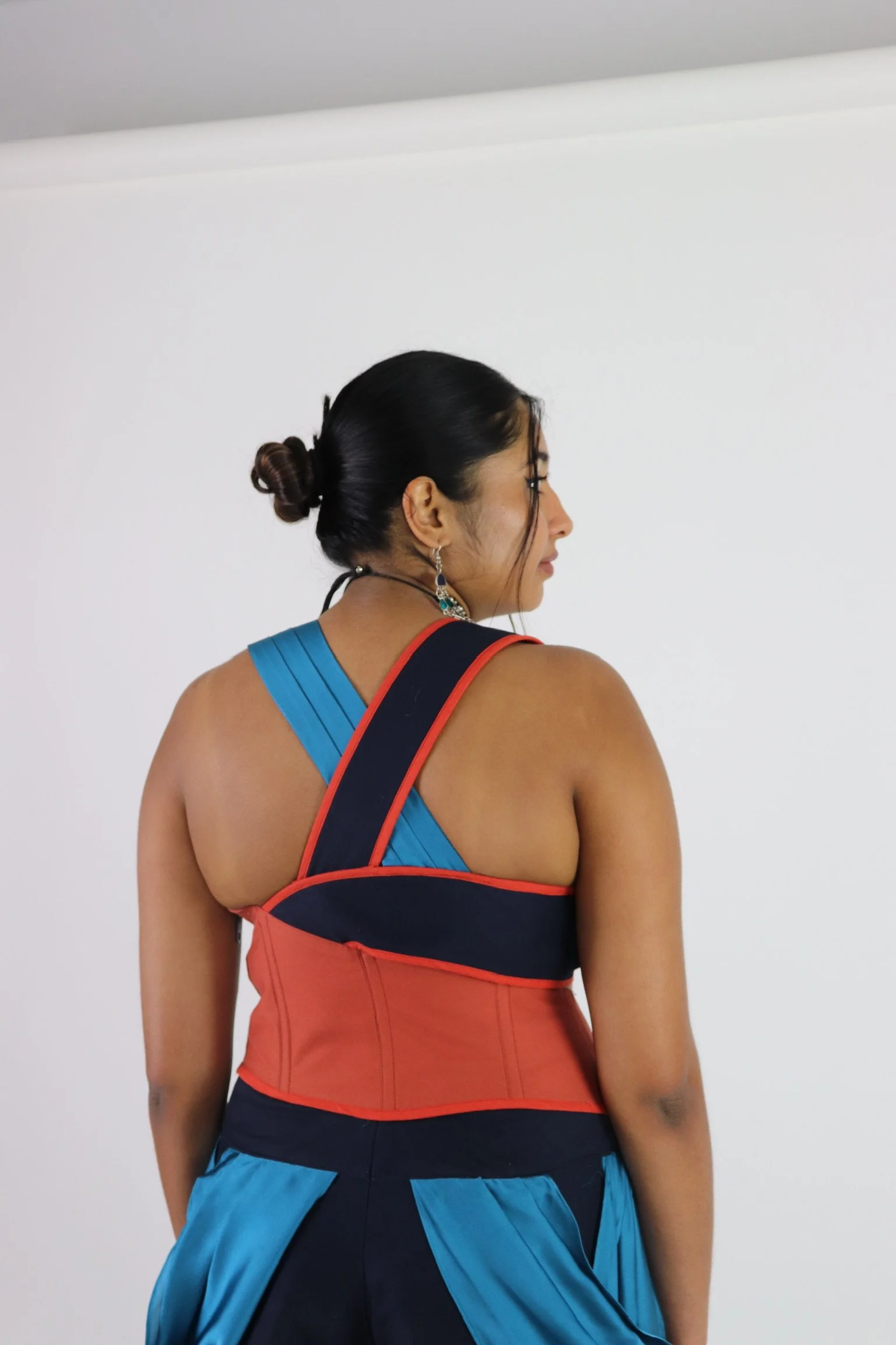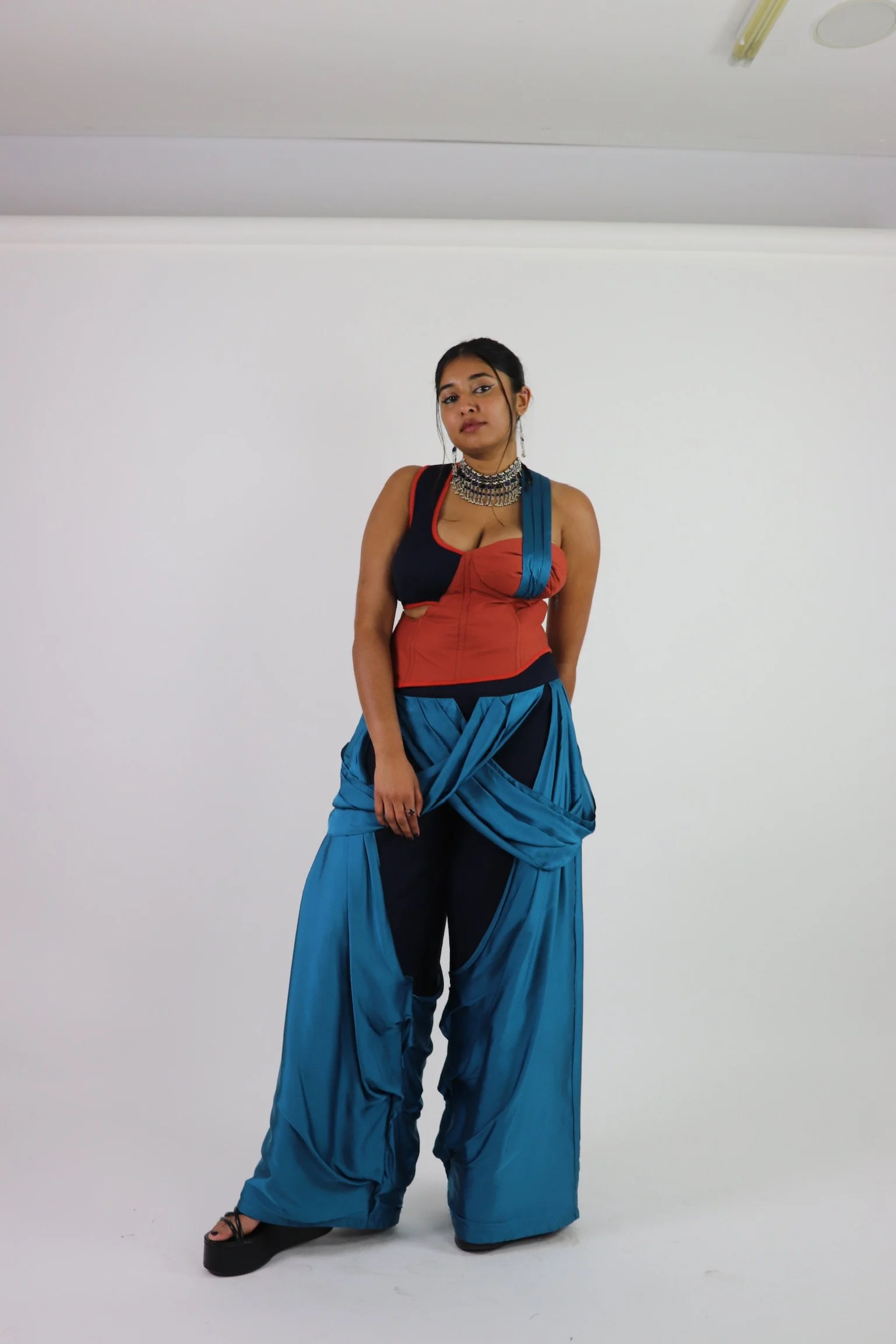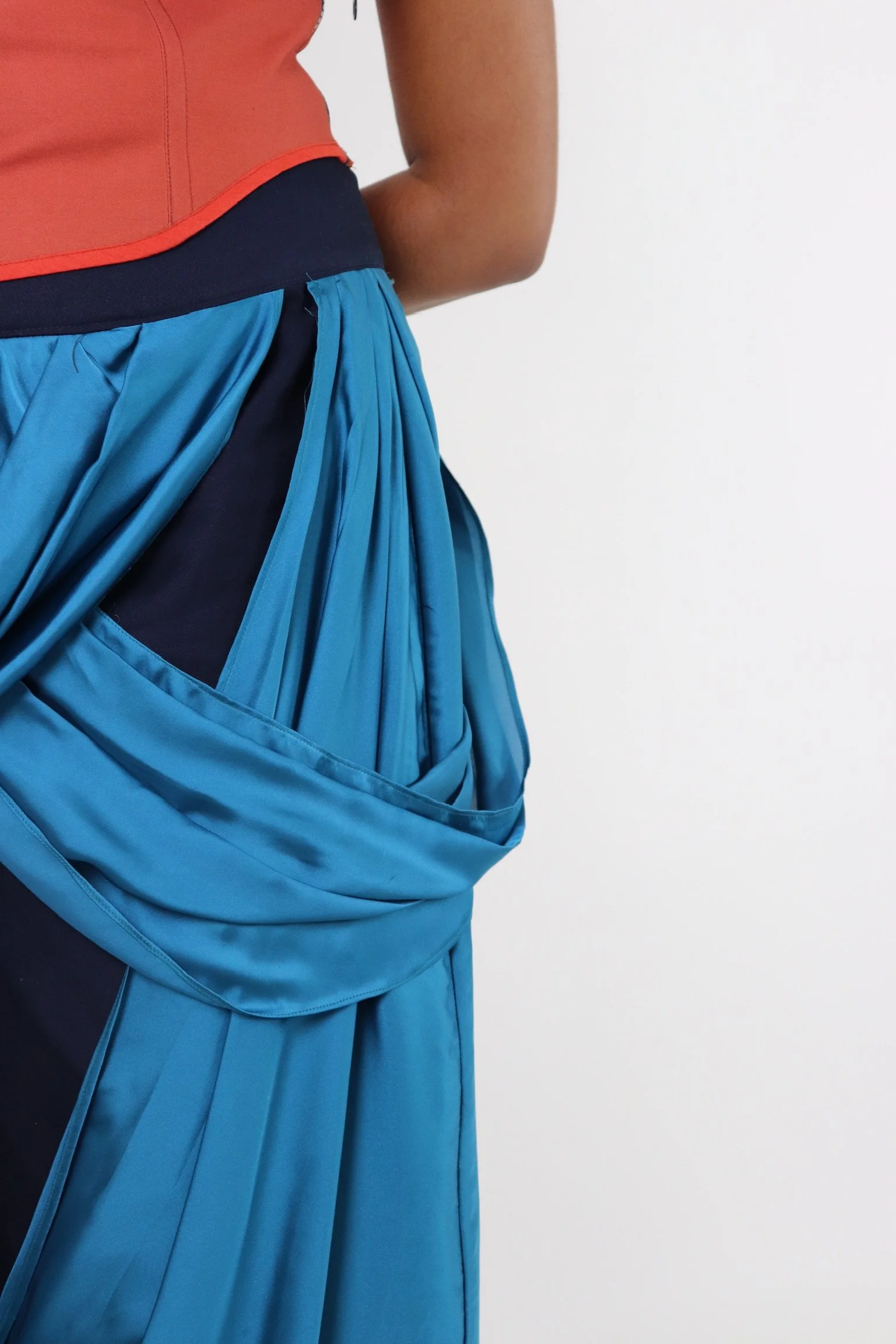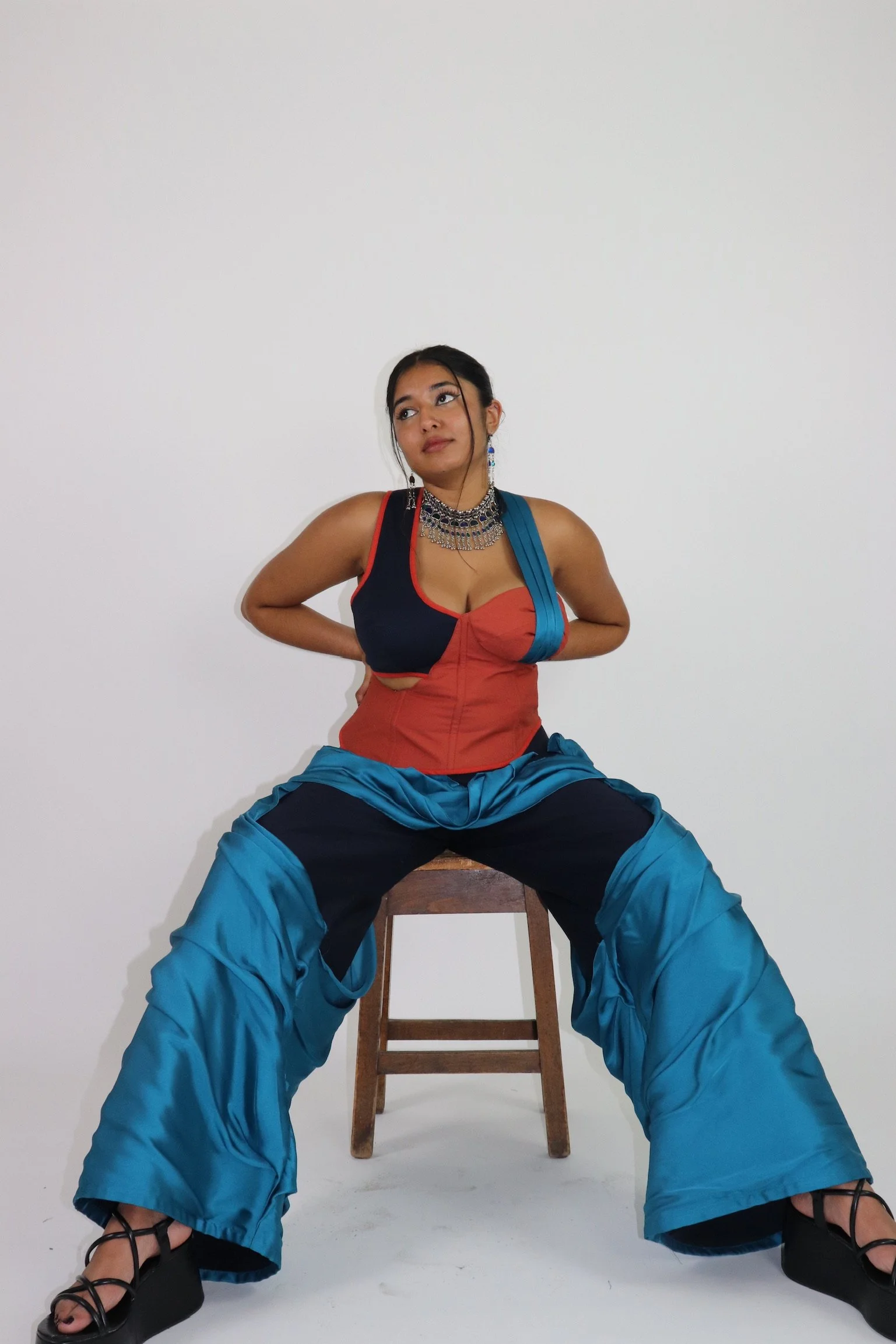 Custom-made garment for Kaashvi, inspired by her Indian heritage and the elegance of sari draping. The design also reflects her British side and personal love for structural corsetry, merging fluidity with form in a celebration of her dual identity.